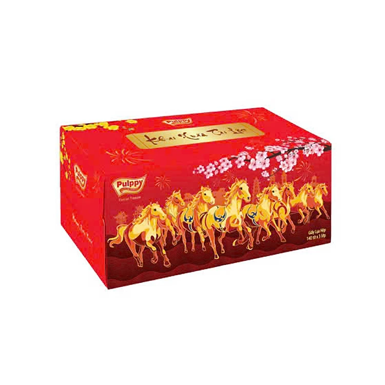 Hộp Khăn Giấy Đỏ Pulppy Tết May Mắn Bính Ngọ 2026 3 Lớp