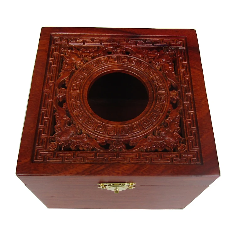 Hộp đựng giấy ăn gỗ hương CHẠM ĐỤC con rơi đẹp mắt