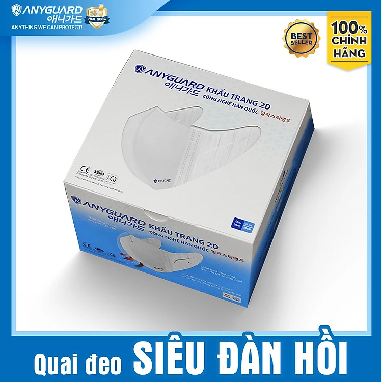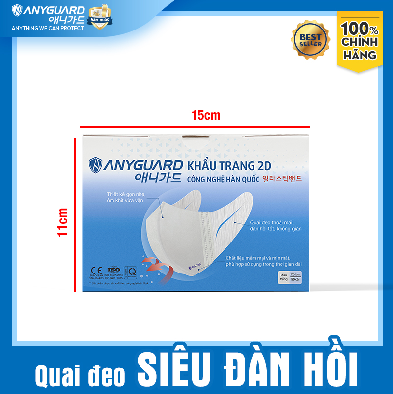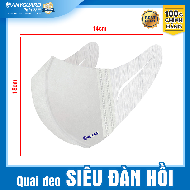 Khẩu Trang Y Tế Hàn Quốc 2D Siêu Ôm Chính Hãng ANYGUARD - Quai Đeo Siêu Đàn Hồi, 3 Lớp Bảo Vệ Tối Ưu, Vải Mịn An Toàn Cho Da Nhạy Cảm, Dành Cho Người Lớn (Hộp 50 cái)
