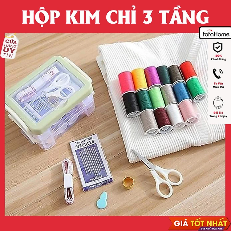 Hộp Kim Chỉ May Đồ Đa Năng Dùng Trong Gia Đình Tiện Dụng Bộ Hộp Kim Chỉ May Vá Đa Năng Gia Đình Nhiều Tầng - Kim Khâu, Chỉ, Kéo, Thước Dây, Đủ Size Màu Mini