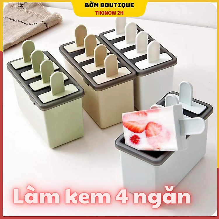 Hộp làm kem 2 lớp, khuôn làm kem 4 ngăn siêu tiện lợi (giao màu ngẫu nhiên)