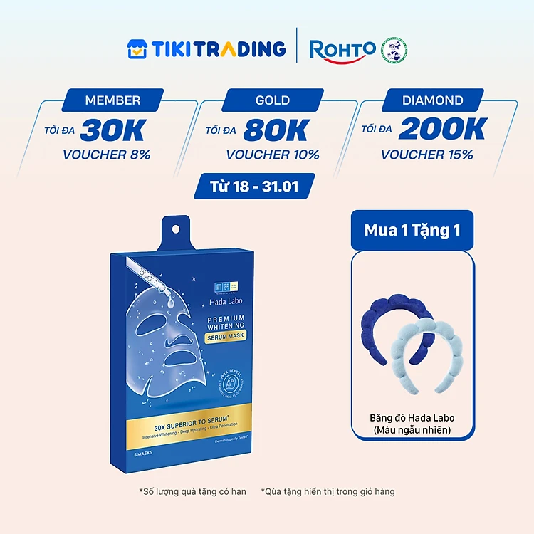 Hộp mặt nạ dưỡng trắng chuyên sâu Hada Labo Premium Whitening Serum Mask 115g (hộp 5 miếng x 23g/ miếng)