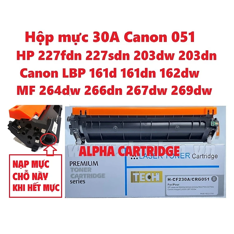 Hộp mực 30A cho máy in HP M227fdn, M203dw, M203dn và Canon 161dn 162dw MF269dw- MF266dn-267dw,.. Hàng chính hãng Alpha Cartridge có chip