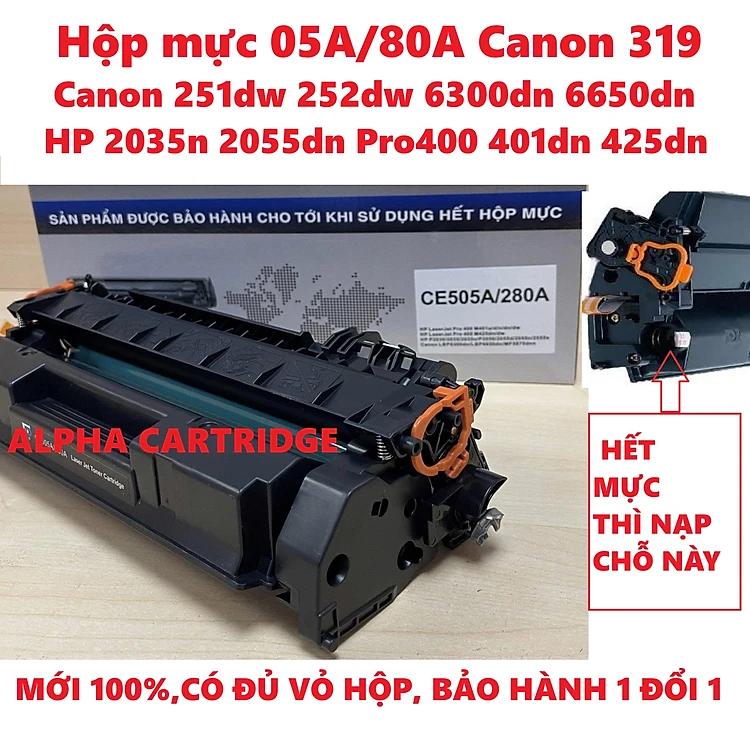 Hộp Mực 80A cho HP P2035 2035N 2055D 2055DN HP Pro 400 M401d M401n M401dn M401dw M425dn và Canon LBP 251DW 252DW 6300dn 6650DN 6670DN 6680X - 05A CRG 319 CE505A/CF280A Hàng chính hãng Alpha Cartridge