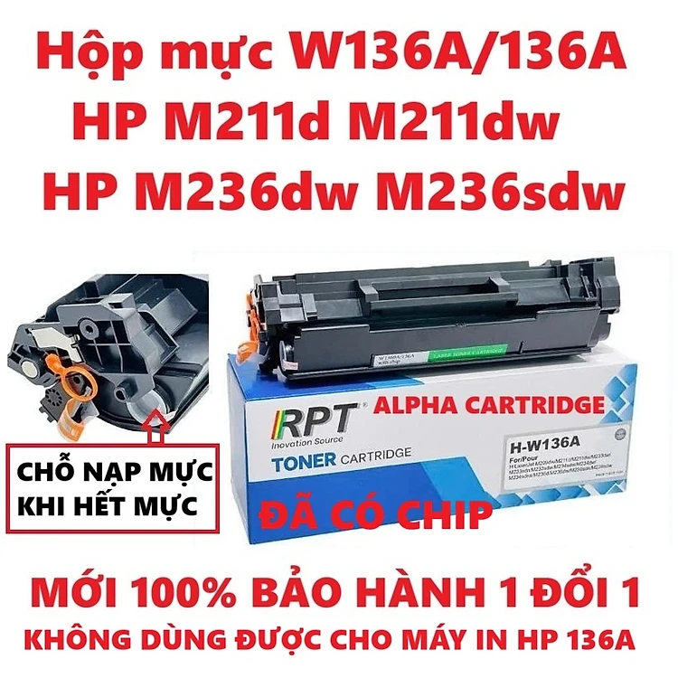 Hộp mực HP 236dw 236dw 236sdw, 211d, 211dw Có Chíp -W136A- CHO MÁY IN HP M211d, M211dw, M236dw, M236sdw -HÀNG CHÍNH HÃNG ALPHA CARTRIDGE