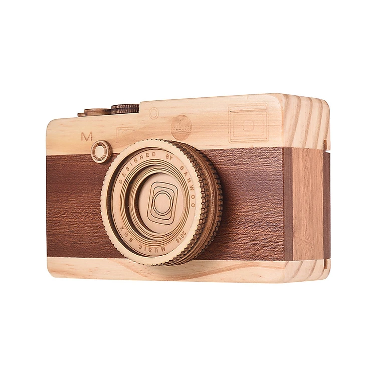 Hộp Nhạc Bằng Gỗ Họa Tiết Máy Ảnh Nhạc Chúc Mừng Sinh Nhật, Giáng Sinh