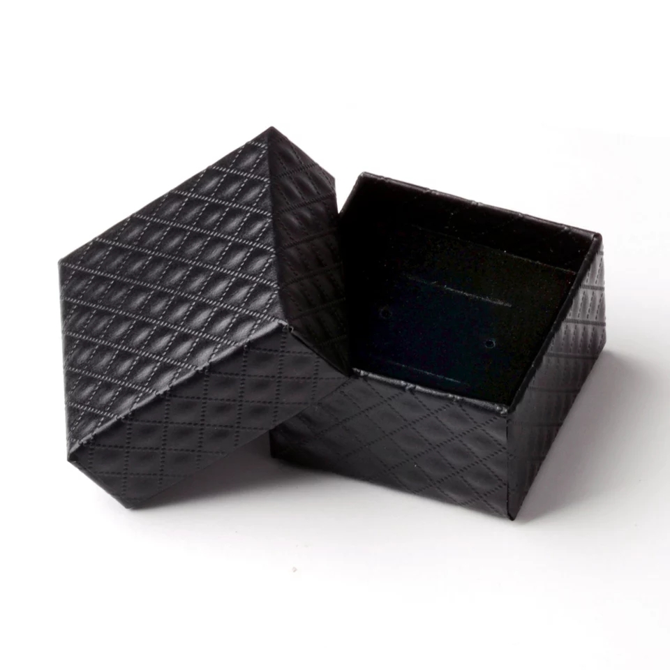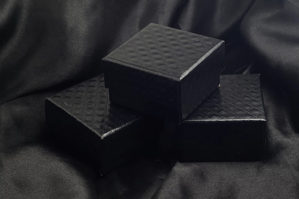 Hộp được làm thủ công từ giấy và bọc da bên ngoài, tạo vẻ đẹp sang trọng và quý phái, kết hợp cùng với màu đen làm tô điểm lên sự sang trọng của trang sức được chứa.