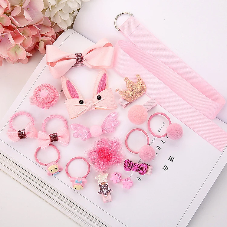 - Hộp phụ kiện gồm 18 món kẹp tóc, cột tóc đủ loại, to và nhỏ nhiều họa tiết ngộ nghĩnh cho bé dễ phối cùng trang phục