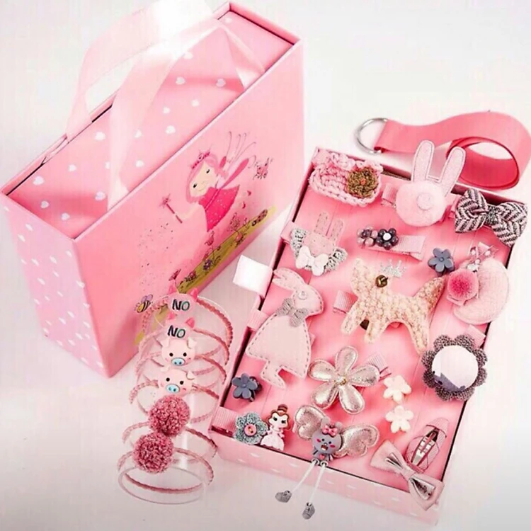 Hộp cứng kiêm túi xách xinh ơi là xinh cho bé gái Full hộp túi như hình tặng thì quá xịn ạ ️Đảm bảo bé nào cũng mê tít với hộp kẹp tóc đủ sắc màu dễ thương kute siêu này lun ️Set gồm dây cột tóc- kẹp tóc mái- kẹp tóc hình nơ to nhỏ nói chung mê tít ko chê đc điểm gì luôn ấy ️Thị trường hiện đang bán rất nhiều loại luôn nhé. Nhưng nhấn mạnh lại của nhà em là loại 24 chi tiết ko fai 10-12 chi tiết đâu