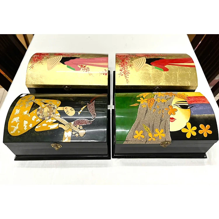 Hộp nữ trang 2 tầng nắp cong Sơn Mài Cao Cấp Thanh Bình Lê đựng đồ trang sức, vật dụng nhỏ xinh, làm quà tăng,...