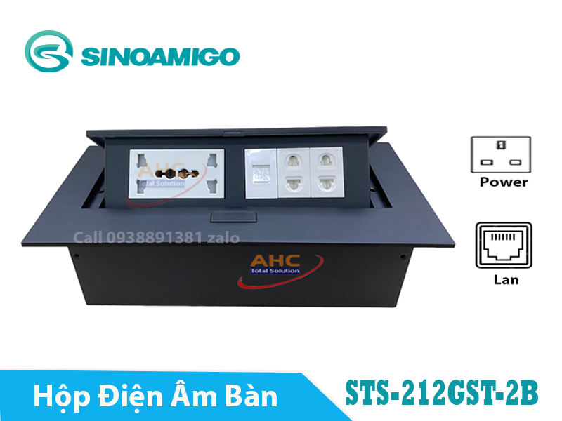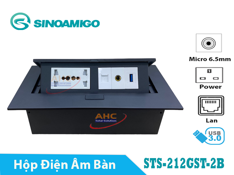 Hộp ổ cắm âm bàn đa năng Sinoamigo STS-212GST-2B màu đen. Module tùy chỉnh, tích hợp mạng, thoại,HDMI, USB, Audio - Hàng chính hãng Full thuế VAT, COCQ