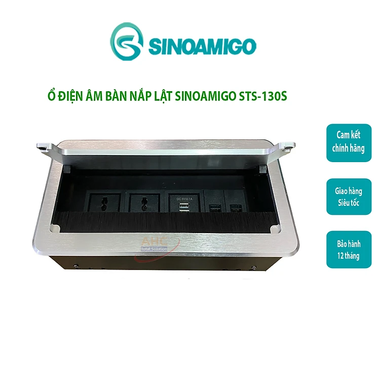 Thông tin chi tiết Hộp điện âm bàn Sinoamigo STS-130S màu bạc nắp mở dạng lật