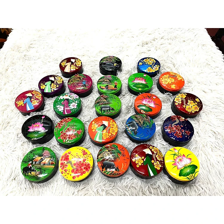 Hộp phấn tròn sơn mài cao cấp Thanh Bình Lê size 10x5 cm đựng đồ vật nhỏ, bánh kẹo mứt, trang trí