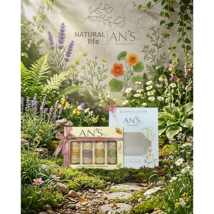 Hộp quà tặng combo 4 gel tắm AN'Sw tặng sinh nhật, 20/10, 20/11, Noel, Tết, Valentine, 8/3 (kèm túi giấy)