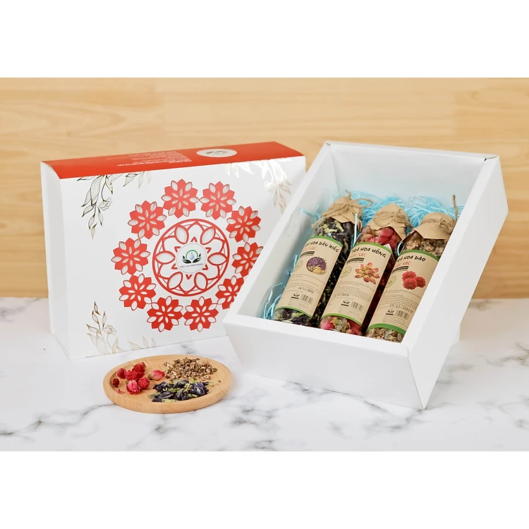 Với những sét quà tặng trà hoa lịch sự như thế này không những thể hiện được tấm lòng của người tặng mà ngay cả người được nhận quà cũng cảm thấy hạnh phúc. Bởi lẽ món quà mang ý nghĩa rất lớn về tình cảm, về sự quan tâm sức khỏe, đó là tấm lòng của người tặng muốn gửi gắm. Trà hoa là sản phẩm có nguồn gốc hoàn toàn từ thiên nhiên an toàn được ông cha ta đúc kết và sử dụng nhiều đời nay. Có hơn 50 loại hoa để khách hàng lựa chọn và tự tay mix cho mình một món quà tặng ưng ý hoặc hãy để Shop giúp các bạn làm điều đó