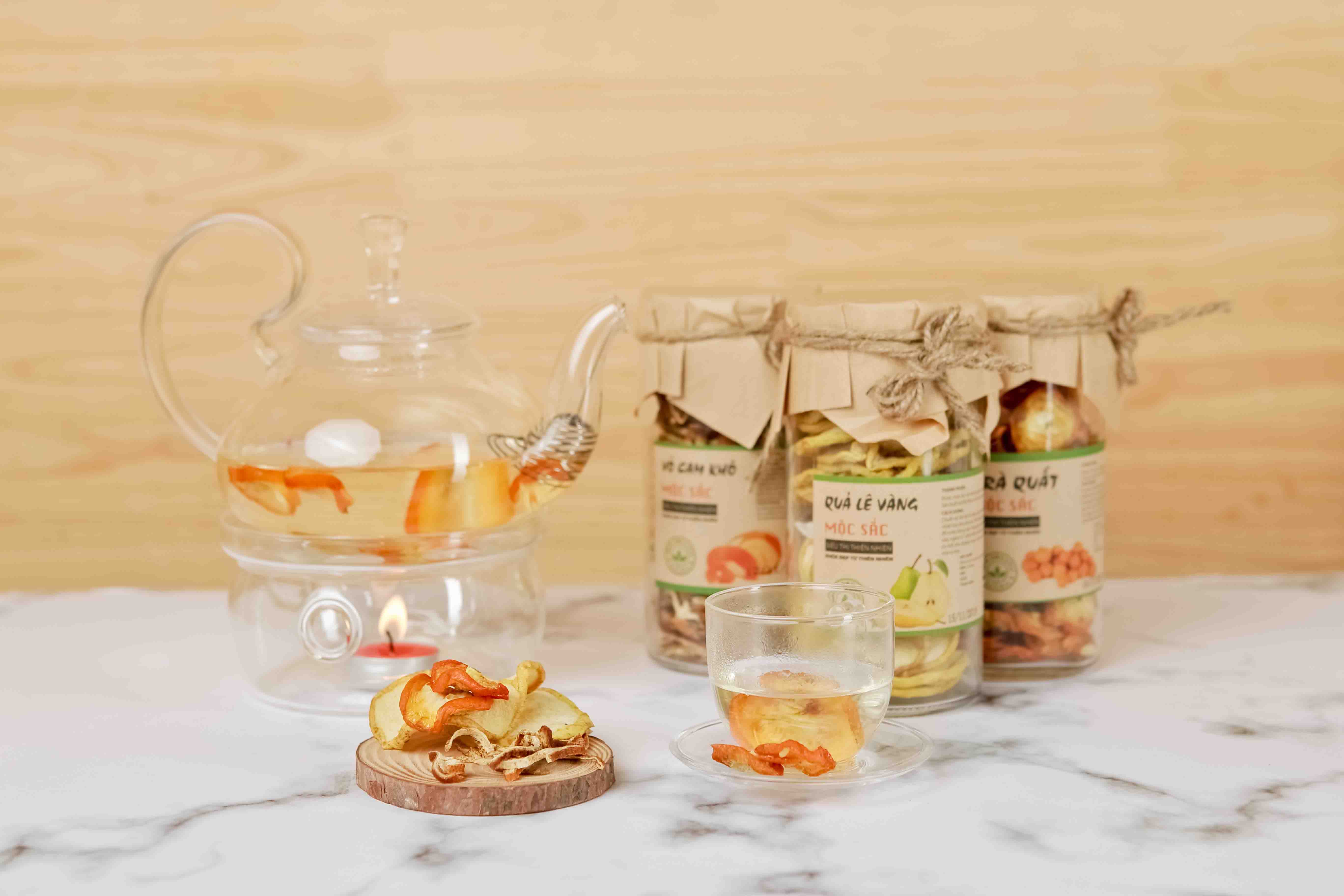 Trà hoa Mộc Sắc là sản phẩm có nguồn gốc hoàn toàn từ thiên nhiên, an toàn, sản xuất trên dây chuyền hiện đại. Siêu thị thiên nhiên có hơn 50 loại trà hoa quả thảo dược để bạn có thể tự tay mix tặng tới những người thân yêu của mình.