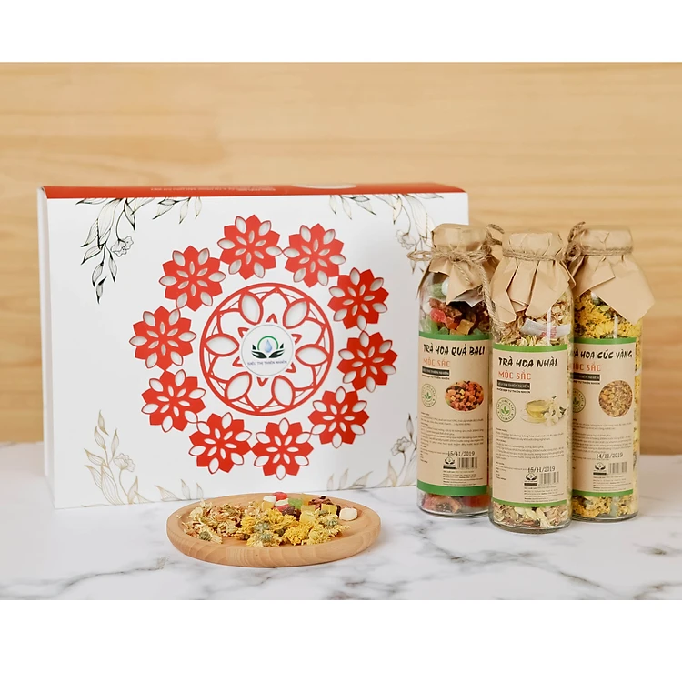 Hộp quà tặng trà hoa cao cấp - Set 3: Trà hoa cúc vàng, Hoa quả Bali, Hoa nhài