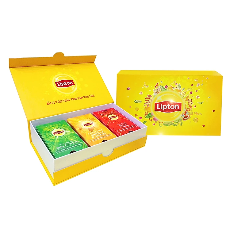 - Hộp Quà Trà Lipton: Green Gunpowder + Vanilla Caramel + Peach Mango được làm từ nguyên liệu đường, chất điều chỉnh độ axit, muối, tinh chất trà đen... đã qua sàng lọc, sấy khô, sản phẩm giữ lại hương vị tinh túy nhất, mang lại hương vị thơm ngon, hấp dẫn ngay khi thưởng thức.