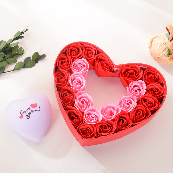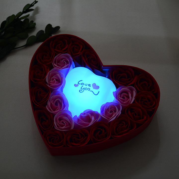 Hộp Quà Trái Tim 22 Hoa Hồng Sáp Đèn Led