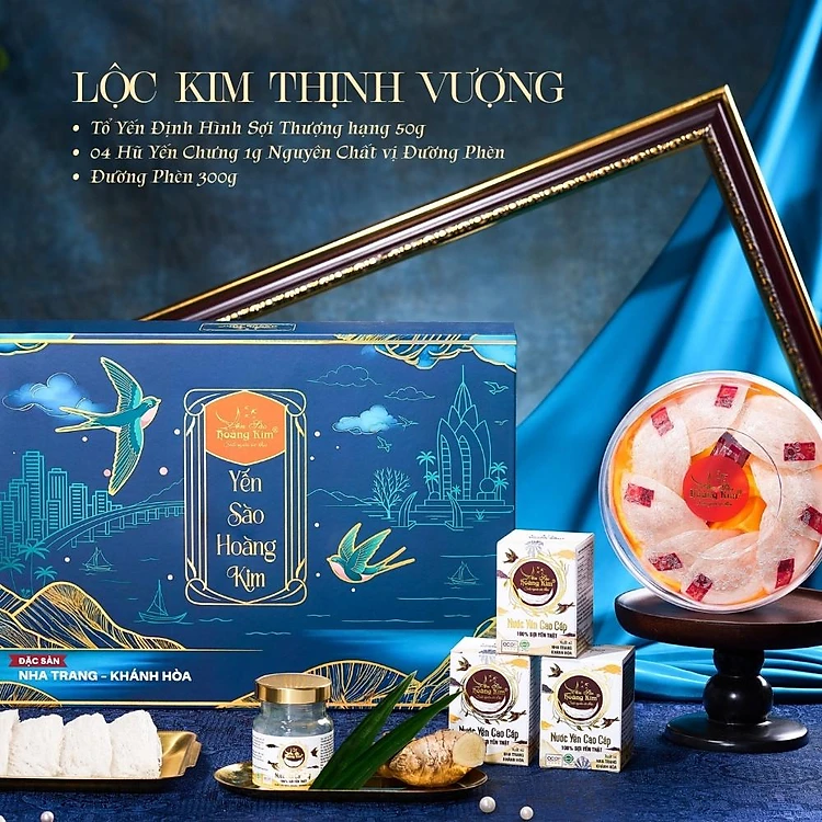Hộp Quà Yến Sào Lộc Kim Thịnh Vượng Hoàng Kim (Set 50g Tinh Chế Sợi Thượng Hạng & 4 Hũ Yến Chưng) Quà Tặng Đối Tác