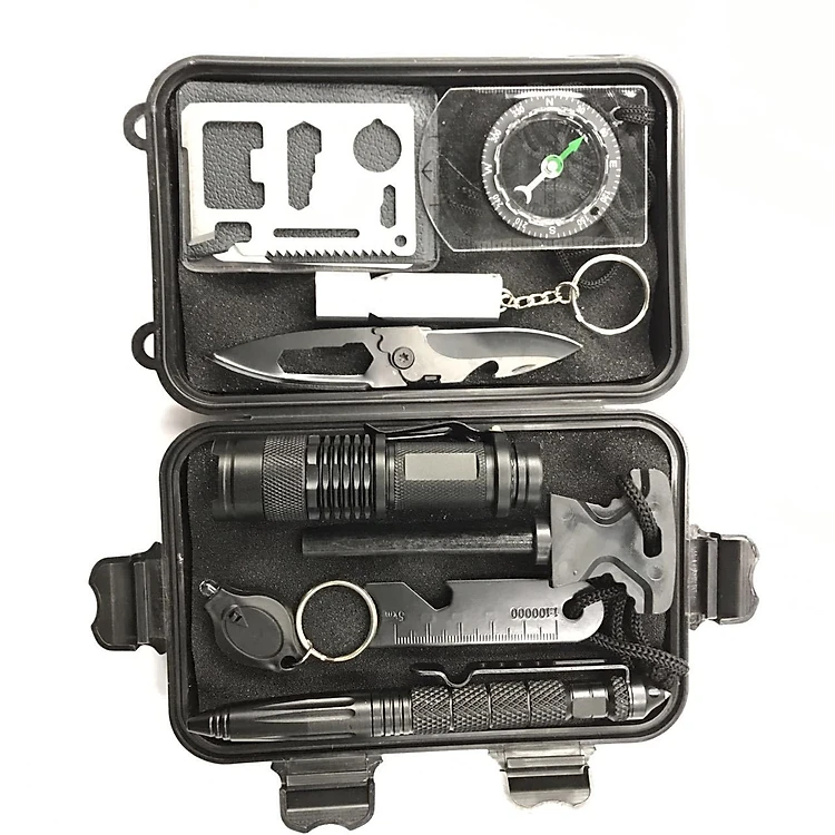 Hộp sinh tồn cao cấp 9 món, Bộ dụng cụ sinh tồn đa chức năng, Hộp sơ cứu dành cho trường hợp khẩn cấp, Đồ dùng khẩn cấp - GROFA