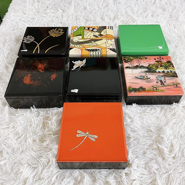 Hộp sơn mài vuông cao cấp Thanh Bình Lê đa năng đựng đồ vật, làm quà tặng ý nghĩa size 16x7 cm