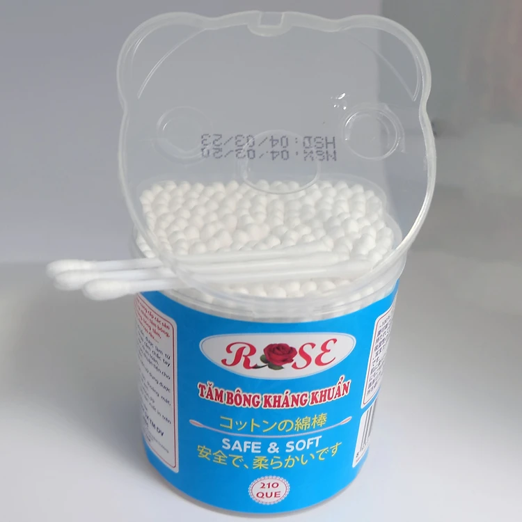 Hộp tăm bông ráy ( ngoáy) tai người lớn ROSE hộp gấu que nhựa (210 cây) - Hàng chính hãng
