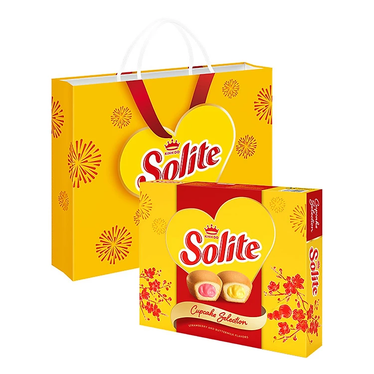Bánh bông lan Solite là sự hòa quyện giữa lớp bông lan mềm mịn, tan ngay trong miệng với lớp kem béo ngậy, mang lại cho bạn món ăn nhẹ thơm ngon & nguồn năng lượng tức thì. Hộp bánh với phiên bản Tết đặc biệt, thết kế sang trọng, màu sắc nổi bật, không những có thể sử dụng trong gia đình mà còn phù hợp biếu tặng.