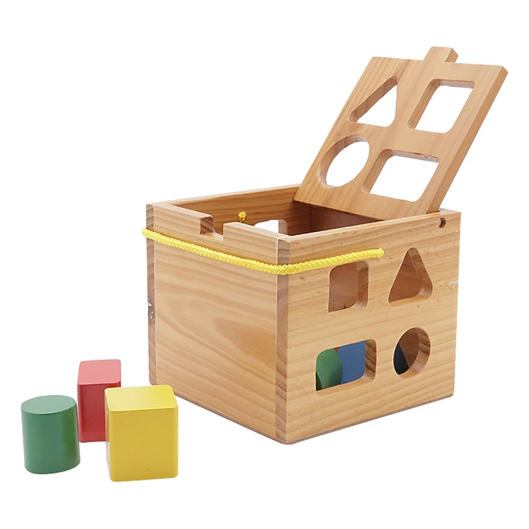 - Giúp bé học các hình khối để làm quen với toán học: Hộp thả hình khối 140 x 140 cm gồm 1 hộp vuông xinh xắn và 10 hình khối đơn giản như hình vuông, hình tròn, hình chữ nhật, tam giác, hình thoi (mỗi hình là 2 khối) bé phải tìm đúng hình mới có thể cho vừa lọt vào xe gỗ, nếu không tìm đúng hình sẽ không chui lọt