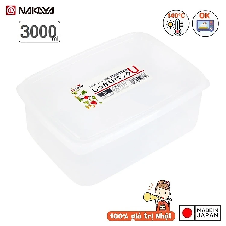 Hộp thực phẩm chữ nhật Nakaya 3000ml hàng nội địa Nhật Bản