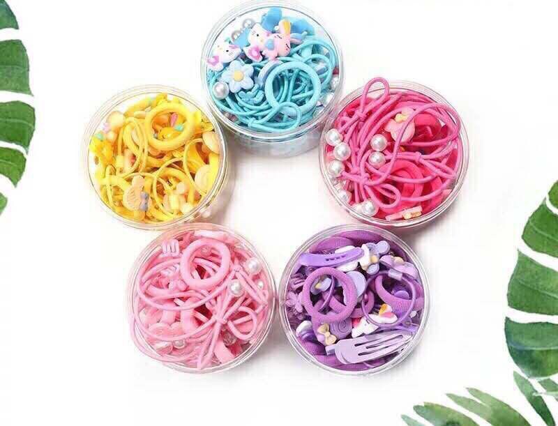 Hộp Chun Buộc Tóc Kẹp Tóc Đính Nơ 50 Chi Tiết Cho Bé