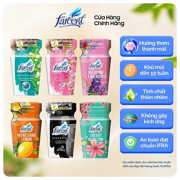 Hộp toả hương khử mùi thanh lọc không khí Farcent hương dịu nhẹ 300ml cho bếp, phòng khách, nhà tắm