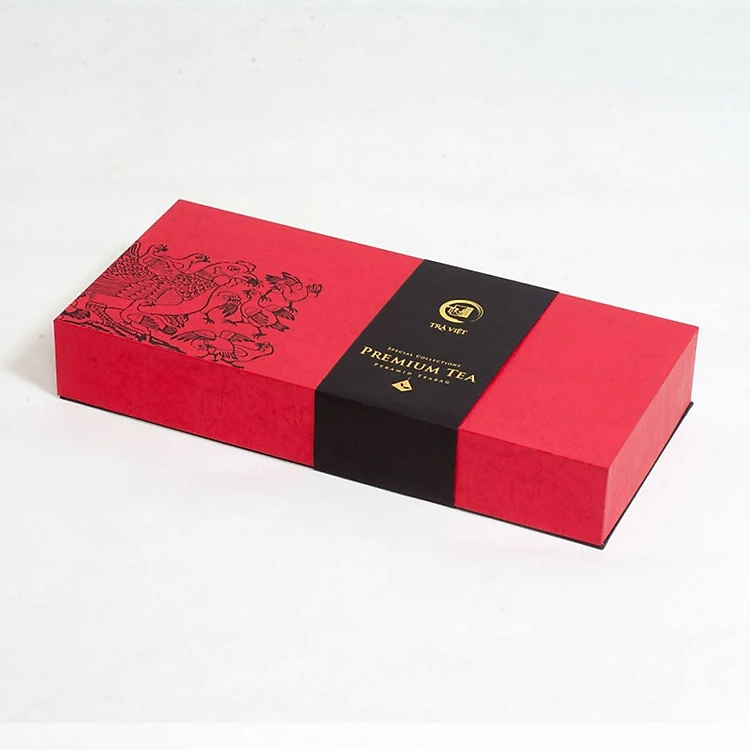 Hộp quà Kim Tự Tháp 10 có kích thước 18 x 40 x 6cm, chất liệu giấy mỹ thuật đỏ – đen, thiết kế hộp âm dương, bên ngoài là hoa văn tranh dân gian Đông Hồ mang biểu tượng sum vầy được in theo phương pháp kéo lụa thủ công. Bên trong là 10 kim tự tháp đựng trà thảo mộc, mỗi kim tự tháp chứa 1 túi trà 2,5g. Với hộp quà Kim Tự Tháp 10, bạn có thể chọn cùng một loại trà thảo mộc hoặc chọn 10 loại trà khác nhau, tăng thêm trải nghiệm về trà ngon cho người được nhận món quà.