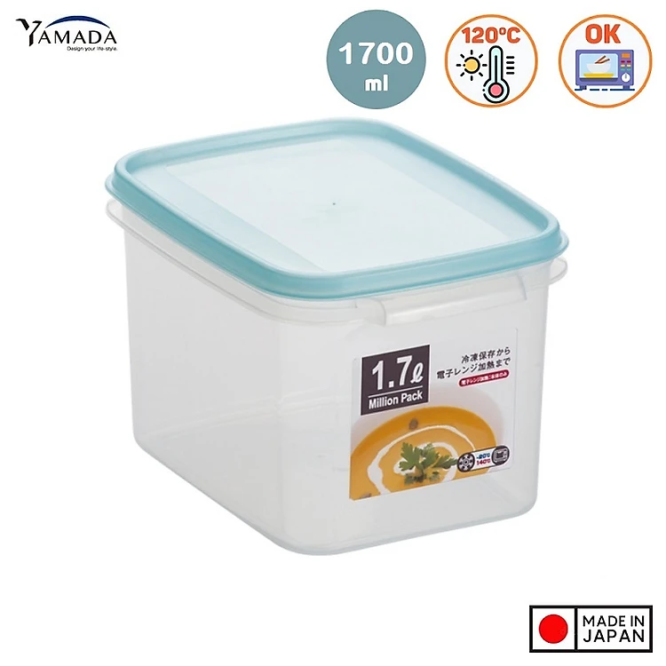 Hộp trữ thức ăn YAMADA bảo quản thực phẩm tủ lạnh, tủ đông chịu nhiệt cao và dùng được trong lò vi ba 1700ml - hàng nhập khẩu chính hãng (MADE IN JAPAN)
