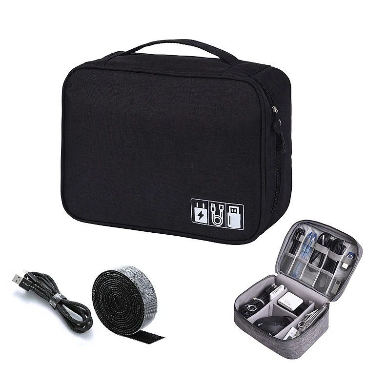 Hộp Túi Vải Đựng Phụ Kiện Công Nghệ Đa Năng Nhiều Ngăn Chống Thấm Nước Túi Phụ Kiện Du Lịch Cho Cáp Sạc Di Động, Sạc Dự Phòng, Điện Thoại, Tai Nghe, Thẻ Nhớ - Hàng Chính Hãng + Kèm 1 Mét Dây Gai Dính Tròn Buộc Gọn Cáp