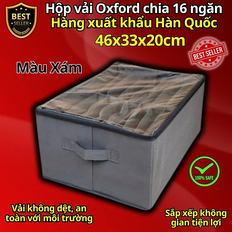 Hộp vải đựng đồ chia ngăn HQ4 - Hộp đựng quần áo chia 9 ngăn, 16 ngăn gấp gọn chính hãng