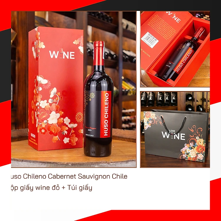Hộp wine đỏ 1 chai Huso Chileno Cabernet Sauvignon Chile