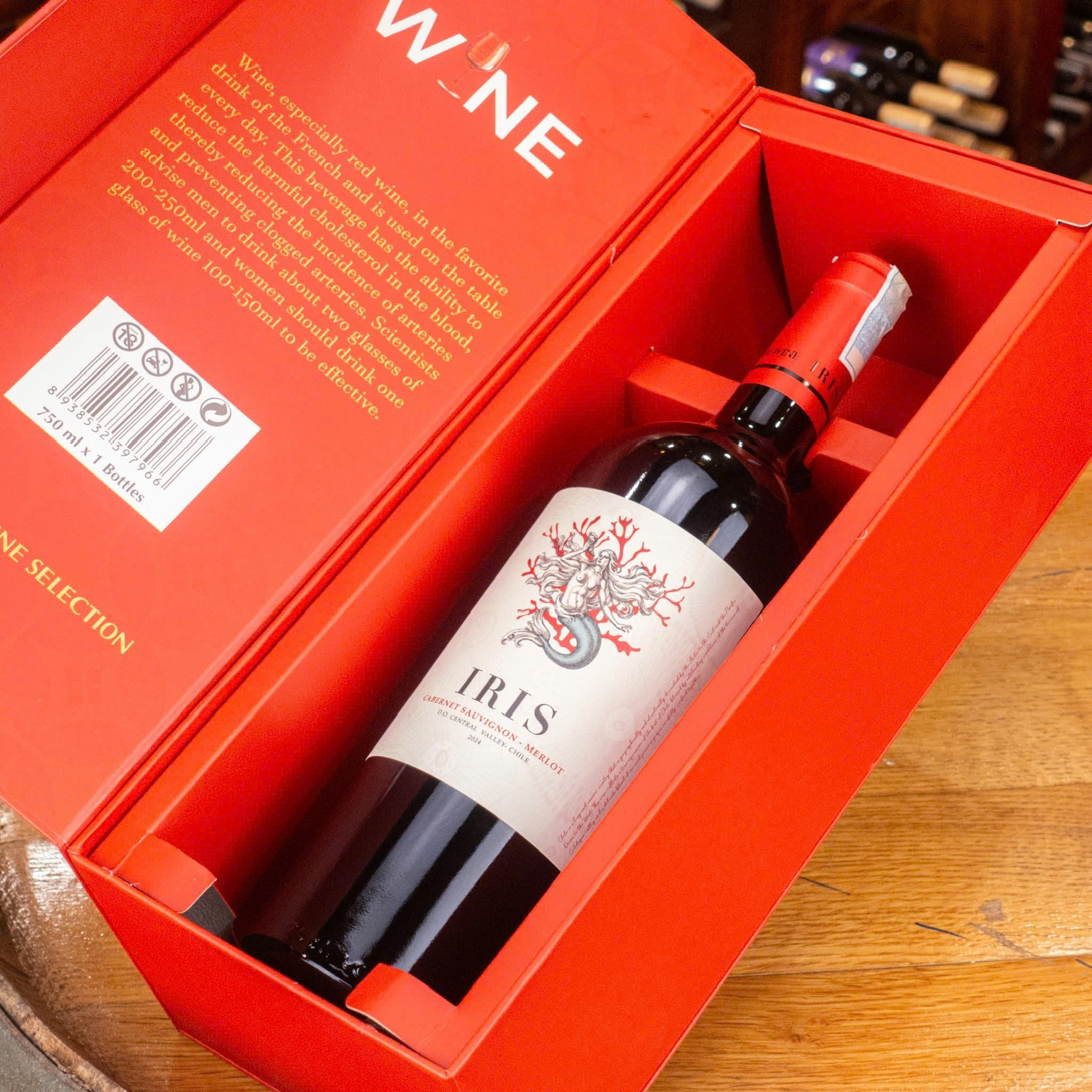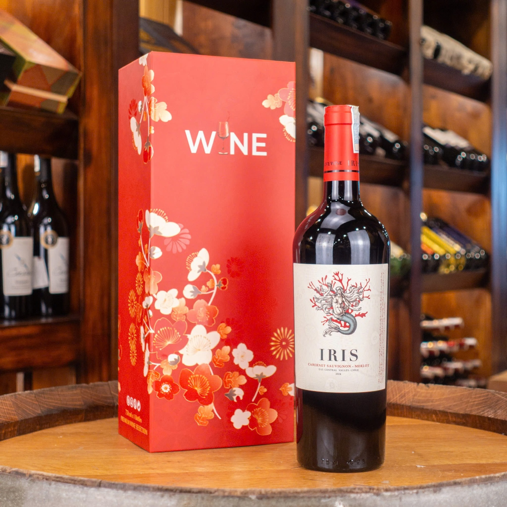 Hộp wine đỏ 1 chai Iris Merlot/ Cabernet Chile
