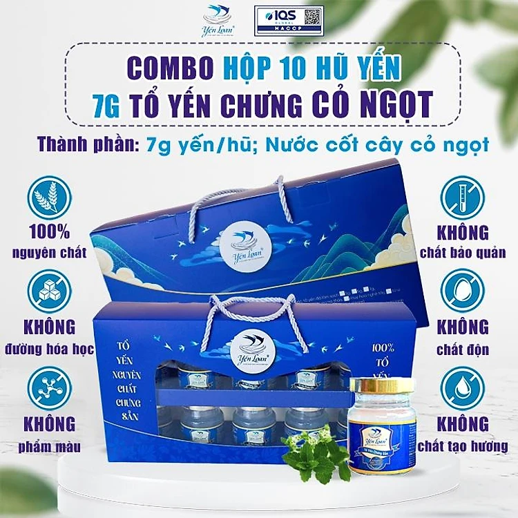 Hộp Yến Chưng Sẵn Yến Loan 10 Hũ 7g Chưng Cỏ Ngọt Không chất Bảo Quản Chăm Sóc Sức Khỏe Cho Mọi Người.
