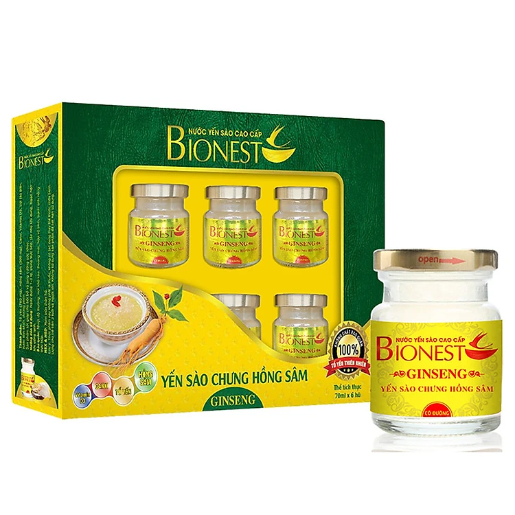 Hộp Yến sào Bionest Ginseng hồng sâm cao cấp - hộp 6 lọ