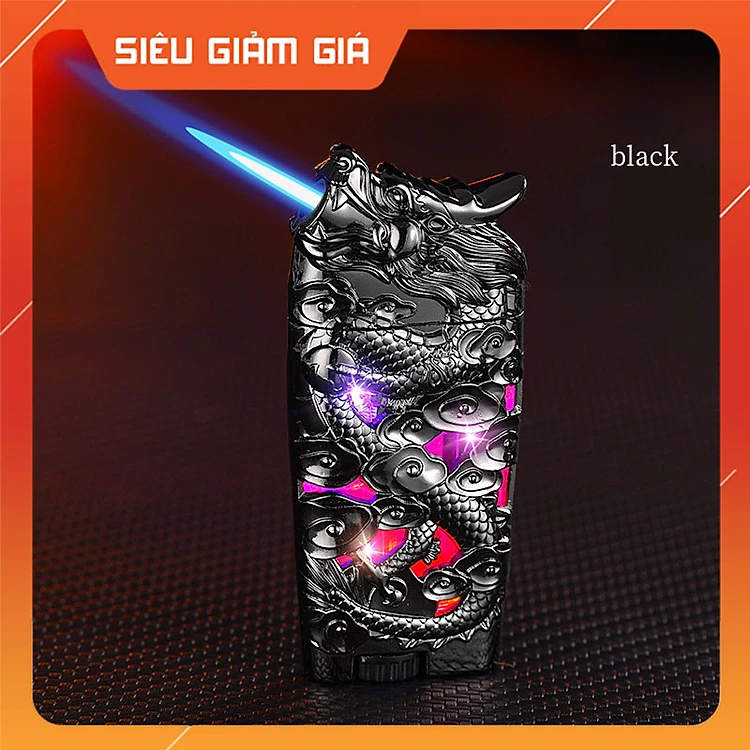 Vỏ Hột Quẹt Bật Lửa Gas D039 Lộ Thiên Ốp Họa Tiết Rồng Nổi Độc Đáo Có Đèn Led Cực Kỳ Nổi Bật-Nhiều Màu