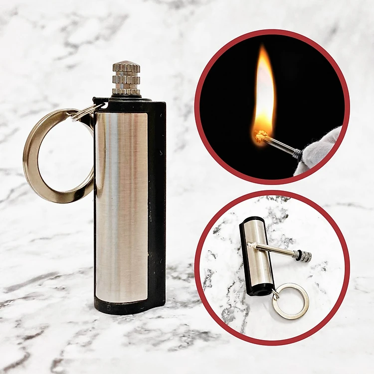Hột quẹt bật lửa móc khóa diêm xăng sinh tồn hình Trụ Tròn - xài xăng