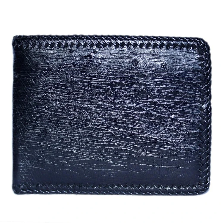HP2439 - Bóp nam Huy Hoàng da đà điểu da bụng đan viên màu đen