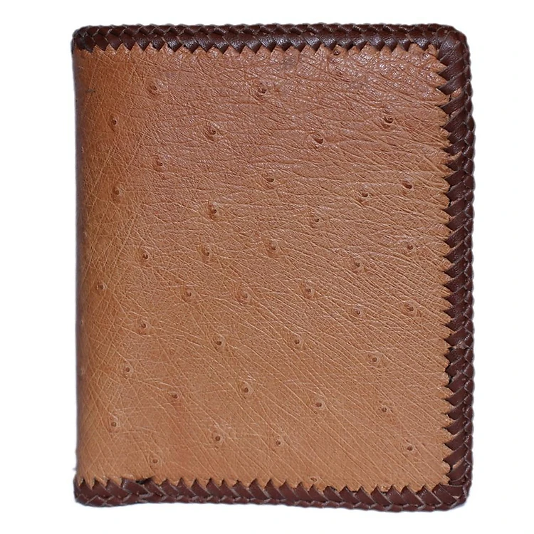 HP2462 - Bóp nam Huy Hoàng da đà điểu da bụng kiểu đứng đan viên màu vàng bò
