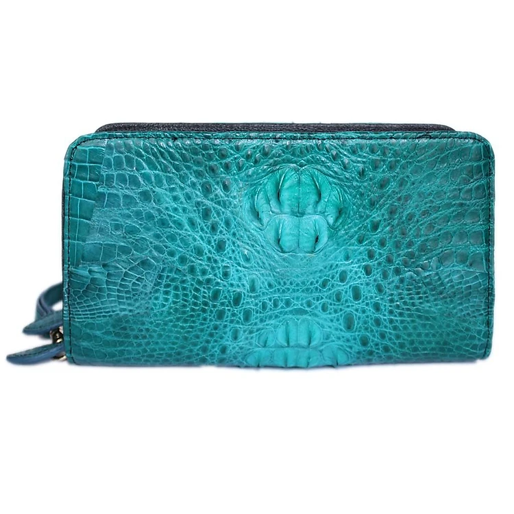 HC3220 - Ví nữ da cá sấu Huy Hoàng ngăn thụt cầm tay màu xanh lá