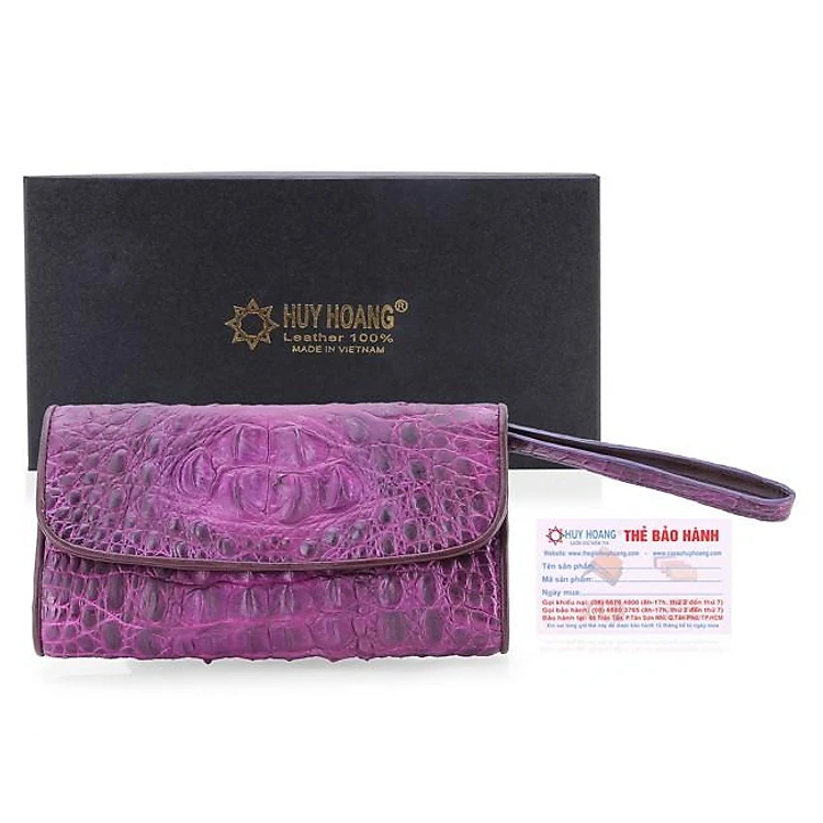 HC3722 - Ví nữ Huy Hoàng da cá sấu 3 gấp nguyên con màu tím