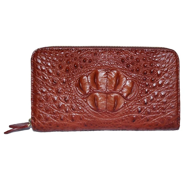 HC3735 - Ví nữ da cá sấu Huy Hoàng nhiều ngăn cầm tay màu nâu đỏ