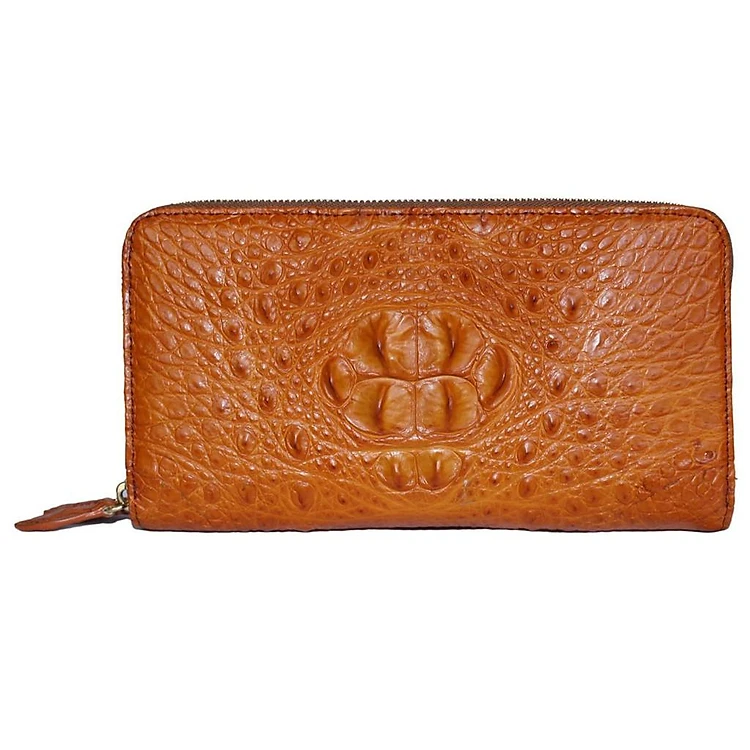 HC3736 - Ví nữ da cá sấu Huy Hoàng nhiều ngăn cầm tay màu vàng bò