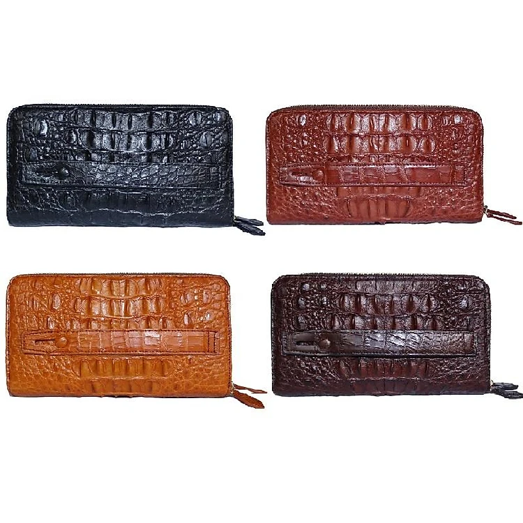 HC3738-39-40-41 - Bóp nữ da cá sấu Huy Hoàng nhiều ngăn gai cầm tay màu đen, nâu đỏ, vàng bò, nâu đất