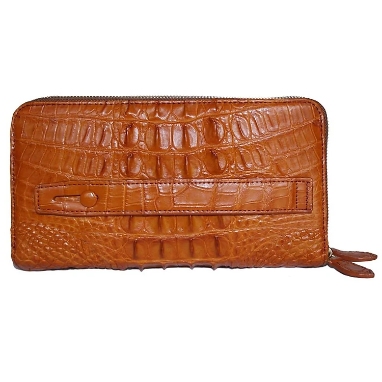 Ví nữ da cá sấu Huy Hoàng nhiều ngăn gai cầm tay màu vàng bò HT3740